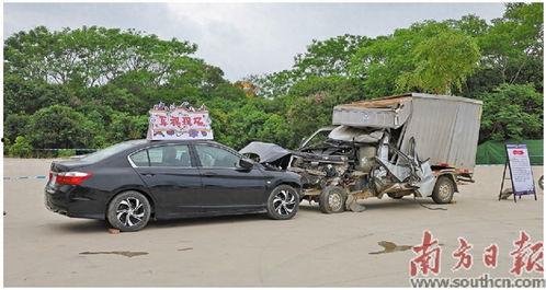 那天,阳光明媚,广东茂名的街头熙熙攘攘。突然,一声巨响打破了宁静,一辆红色轿车与一辆黑色货车发生了碰撞。事故现场,车辆损毁严重,玻璃碎片散落一地,场面可谓是触目惊心。